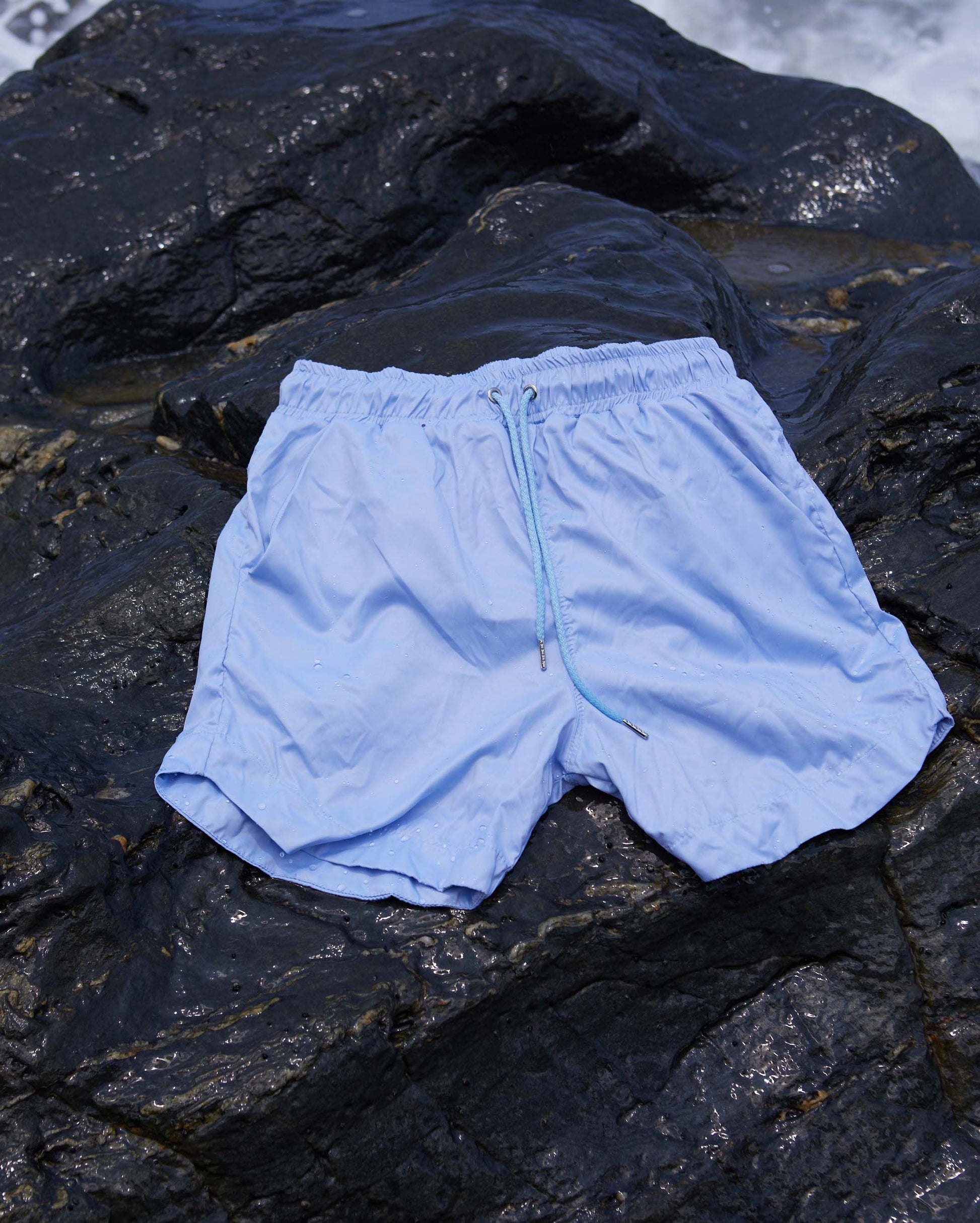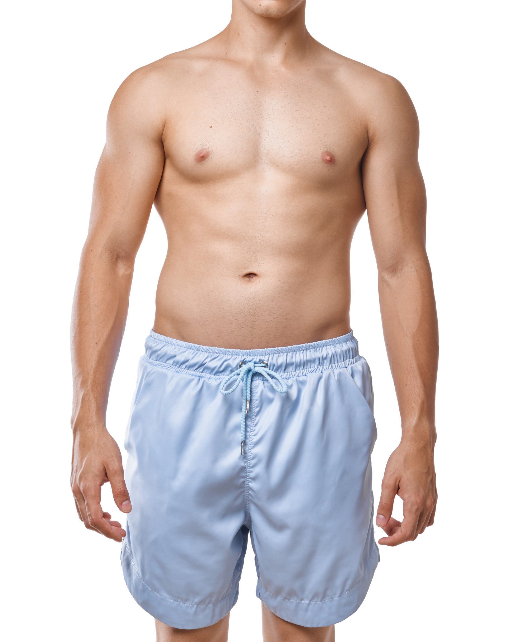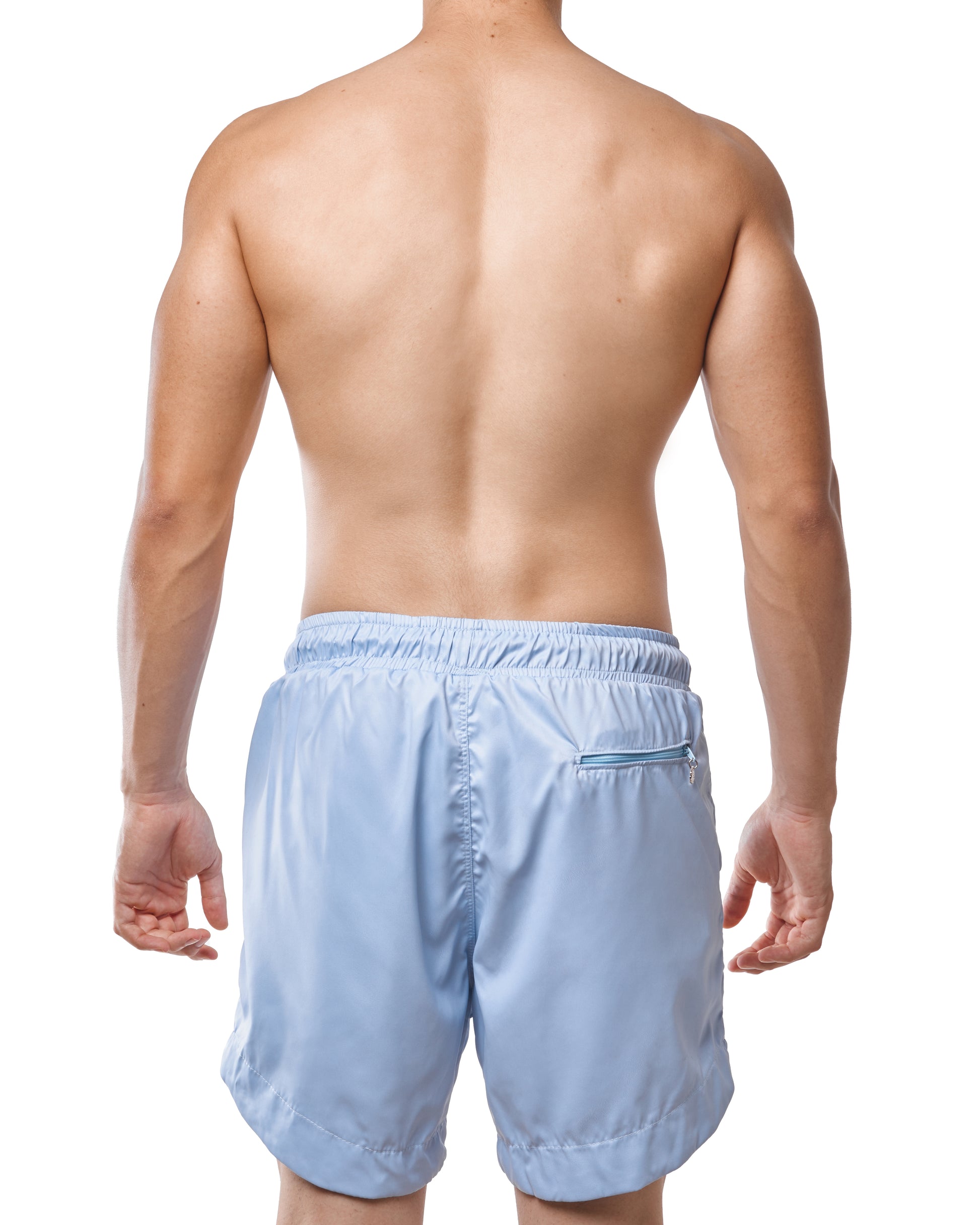 Shortened board shorts feature a curved hem and a fully elastic waistband with adjustable drawstrings for a comfortable, tailored fit. Deep side pockets and a zippered pocket with a silver-plated Monstera leaf pendant add style and functionality. The sewn-in boxer-cut lining is crafted from soft, personalized fabric for all-day comfort.